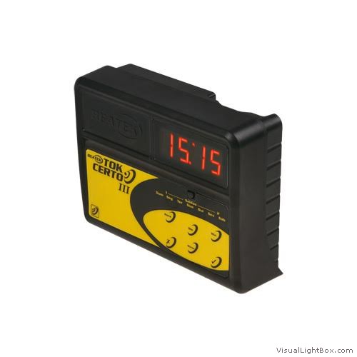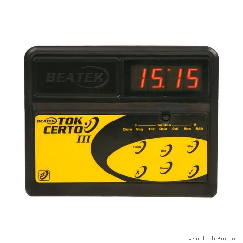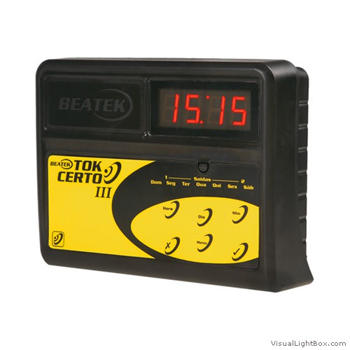 O Tok Certo III é um relógio acionador de sirenes com 2 saídas e de fácil programação, com até 120 horários diários.